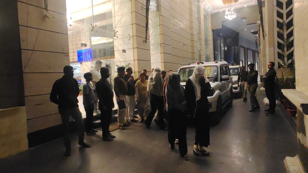 ┬а┬а┬а┬а┬а┬а┬а рдЫрд╛рдкреЗрдорд╛рд░реА рдХреЗ рджреМрд░рд╛рди рд╣реЛрдЯрд▓ рдХреЗ рддреАрди рдЕрд▓рдЧ-рдЕрд▓рдЧ рдХрдорд░реЛрдВ рдореЗрдВ рддреАрди рдорд╣рд┐рд▓рд╛рдПрдВ рдорд┐рд▓реАрдВред рдорд╣рд┐рд▓рд╛рдУрдВ рдХреА рдорд░реНрдпрд╛рджрд╛ рдХреЛ рдзреНрдпрд╛рди рдореЗрдВ рд░рдЦрддреЗ рд╣реБрдП рдорд╣рд┐рд▓рд╛ рдкреБрд▓рд┐рд╕рдХрд░реНрдорд┐рдпреЛрдВ рджреНрд╡рд╛рд░рд╛ рдХрдорд░реЛрдВ рдХреА рддрд▓рд╛рд╢реА рд▓реА рдЧрдИ, рдЬрд╣рд╛рдВ рдЖрдкрддреНрддрд┐рдЬрдирдХ рд╕рд╛рдордЧреНрд░реА рдмрд░рд╛рдордж рд╣реБрдИред