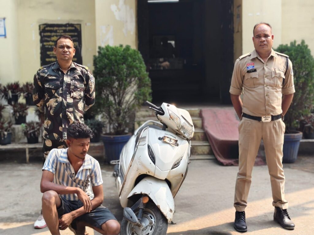 рдХреЛрддрд╡рд╛рд▓реА рдкреБрд▓рд┐рд╕ рджреНрд╡рд╛рд░рд╛ рд╕рдВрджреЗрд╣реА рдордиреЛрдЬ рднрд╛рд░рддреА рдФрд░ рдПрдХ рдХрд┐рд╢реЛрд░ рдмрд╛рд▓рдХ рд╕реЗ рдкреВрдЫрддрд╛рдЫ рдХрд░рдиреЗ рдкрд░ рджреЛрдиреЛрдВ рдиреЗ рд╕реНрдХреВрдЯреА рдЪреЛрд░реА рдХрд░рдирд╛ рд╕реНрд╡реАрдХрд╛рд░ рдХрд┐рдпрд╛ред рд╡рд┐рдзрд┐ рд╕реЗ рд╕рдВрдШрд░реНрд╖рд░рдд рдмрд╛рд▓рдХ рдХреЗ рдореЗрдореЛрд░реЗрдВрдбрдо рдХреЗ рдЖрдзрд╛рд░ рдкрд░ рдЪреЛрд░реА рдХреА рдПрдХреНрдЯрд┐рд╡рд╛ рд╕реНрдХреВрдЯреА рдХреНрд░рдорд╛рдВрдХ CG 13 Y 8208 рдХреАрдорддреА рд▓рдЧрднрдЧ 15,000 рд░реБрдкрдпреЗ рдЬрдкреНрдд рдХреА рдЧрдИред