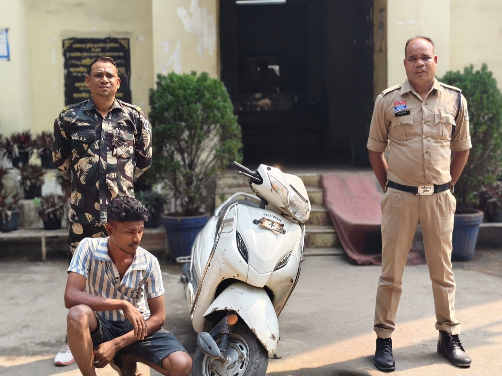 рдорд╛рдорд▓реЗ рдХреА рдЬрд╛рдВрдЪ рдХреЗ рджреМрд░рд╛рди 7 рдорд╛рд░реНрдЪ рдХреЗ рджреЛрдкрд╣рд░ рдерд╛рдирд╛ рдЪрдХреНрд░рдзрд░рдирдЧрд░ рдкреБрд▓рд┐рд╕ рдХреА рдкреЗрдЯреНрд░реЛрд▓рд┐рдВрдЧ рдЯреАрдо рдХреЛ рджреЛ рд╕рдВрджреЗрд╣реА рдПрдХ рд╕рдлреЗрдж рд░рдВрдЧ рдХреА рд╕реНрдХреВрдЯреА рдХреЗ рд╕рд╛рде рдорд┐рд▓реЗред рдкреВрдЫрддрд╛рдЫ рдореЗрдВ рд╡реЗ рд╕реНрдХреВрдЯреА рдХреЛ рдмреЗрдЪрдиреЗ рдХреЗ рд▓рд┐рдП рдЧреНрд░рд╛рд╣рдХ рддрд▓рд╛рд╢рдиреЗ рдХреА рдмрд╛рдд рдмрддрд╛ рд░рд╣реЗ рдереЗред рд╡рд╛рд╣рди рдХреЛ *рд╕рд╢рдХреНрдд рдРрдк* рдкрд░ рдЪреЗрдХ рдХрд░рдиреЗ рдкрд░ рдкрддрд╛ рдЪрд▓рд╛ рдХрд┐ рдЙрдХреНрдд рд╡рд╛рд╣рди рдХреЗ рд╕рдВрдмрдВрдз рдореЗрдВ рдерд╛рдирд╛ рдХреЛрддрд╡рд╛рд▓реА рдореЗрдВ рдЪреЛрд░реА рдХрд╛ рдЕрдкрд░рд╛рдз рджрд░реНрдЬ рд╣реИред рдЗрд╕рдХреА рд╕реВрдЪрдирд╛ рдерд╛рдирд╛ рдХреЛрддрд╡рд╛рд▓реА рдкреБрд▓рд┐рд╕ рдХреЛ рджреА рдЧрдИред