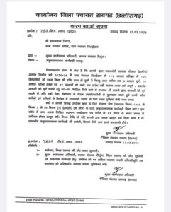 рдХрд╛рд░реНрдпрд╛рд▓рдп рдЬрд┐рд▓рд╛ рдкрдВрдЪрд╛рдпрдд рд░рд╛рдпрдЧрдврд╝ рдиреЗ рдЧреНрд░рд╛рдо рдкрдВрдЪрд╛рдпрдд рд╡реИрд╕реНрдХреАрдореБрдбрд╝рд╛ рдХреЗ рд╕рдЪрд┐рд╡ рдЕрд╢реЛрдХ рдХреБрдорд╛рд░ рдкрдЯреЗрд▓ рддрдерд╛ рдЧреНрд░рд╛рдо рдкрдВрдЪрд╛рдпрдд рдЪрд┐рд░рд╛рдИрдЦрд╛рд░ рдХреЗ рд╕рдЪрд┐рд╡ рд╢реНрдпрд╛рдорд▓рд╛рд▓ рд╕рд┐рджрд╛рд░ рдХреЛ рдХрд╛рд░рдг рдмрддрд╛рдУ рдиреЛрдЯрд┐рд╕ рдЬрд╛рд░реА рдХрд░ рджрд┐рдпрд╛ рд╣реИред