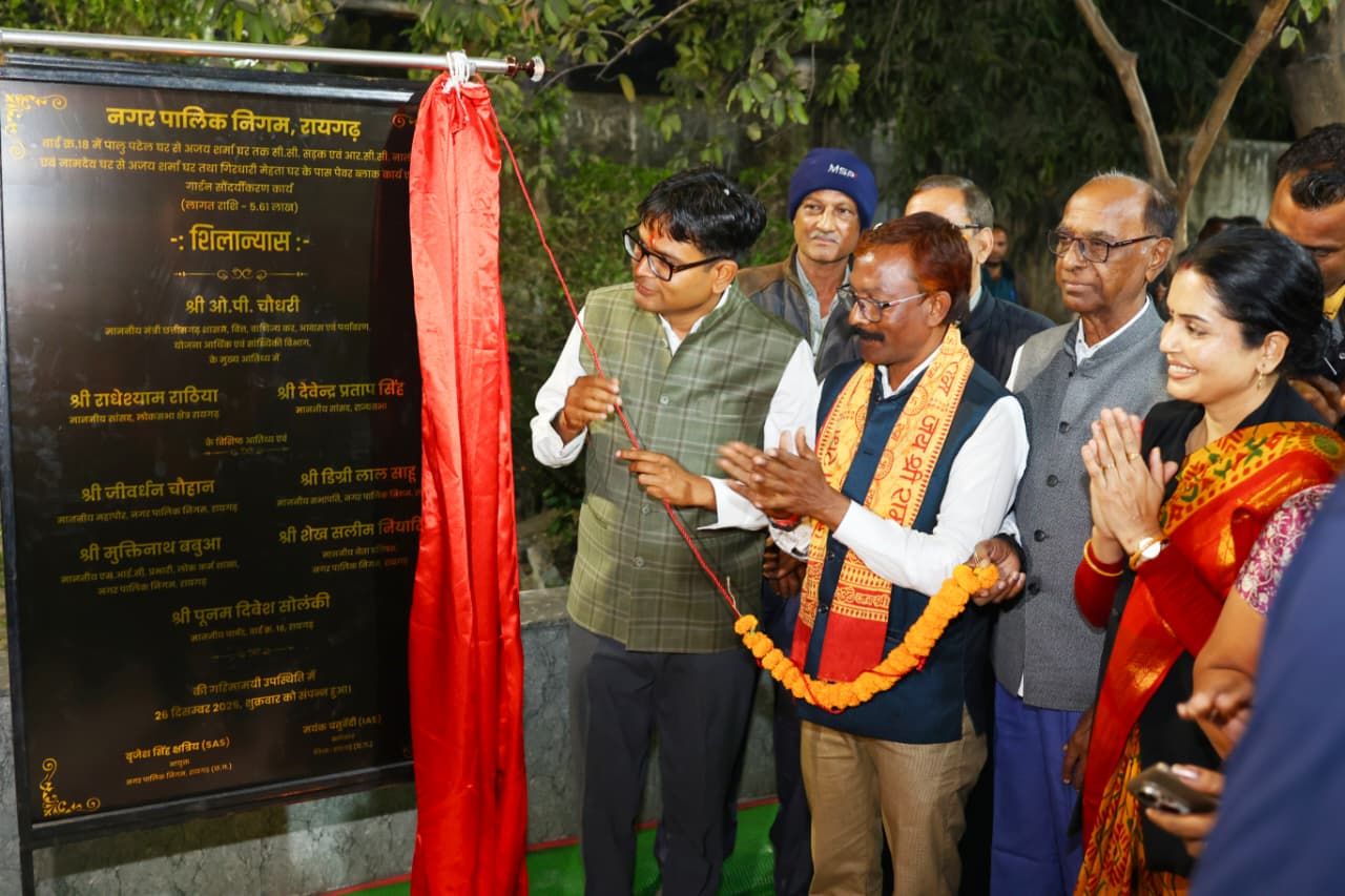 рд░рд╛рдпрдЧреЭ, 26 рджрд┐рд╕рдореНрдмрд░ 2025/ рдкреНрд░рдзрд╛рдирдордВрддреНрд░реА рд╢реНрд░реА рдирд░реЗрдВрджреНрд░ рдореЛрджреА рдХреА рдЧрд╛рд░рдВрдЯреА рдФрд░ рдореБрдЦреНрдпрдордВрддреНрд░реА рд╢реНрд░реА рд╡рд┐рд╖реНрдгреБрджреЗрд╡ рд╕рд╛рдп рдХреЗ рд╕реБрд╢рд╛рд╕рди рдореЗрдВ рд░рд╛рдЬреНрдп рд╕рд░рдХрд╛рд░ рдЖрдордЬрди рдХреЗ рдЬреАрд╡рди рдореЗрдВ рд╕рдХрд╛рд░рд╛рддреНрдордХ рдФрд░ рд╕реНрдерд╛рдпреА рдкрд░рд┐рд╡рд░реНрддрди рд▓рд╛рдиреЗ рдХреЗ рд▓рд┐рдП рдирд┐рд░рдВрддрд░ рдПрд╡рдВ рдкреНрд░рддрд┐рдмрджреНрдз рдкреНрд░рдпрд╛рд╕ рдХрд░ рд░рд╣реА рд╣реИред рдЙрдХреНрдд рдмрд╛рддреЗрдВ рдЖрдЬ рдкреНрд░рджреЗрд╢ рдХреЗ рд╡рд┐рддреНрдд рдордВрддреНрд░реА рдПрд╡рдВ рд░рд╛рдпрдЧреЭ рд╡рд┐рдзрд╛рдпрдХ рд╢реНрд░реА рдУ.рдкреА. рдЪреМрдзрд░реА рдиреЗ рд░рд╛рдпрдЧреЭ рд╢рд╣рд░ рдХреЗ рд╡рд┐рднрд┐рдиреНрди рд╡рд╛рд░реНрдбреЛрдВ рдореЗрдВ рдЖрдпреЛрдЬрд┐рдд рд╡рд┐рдХрд╛рд╕ рдХрд╛рд░реНрдпреЛрдВ рдХреЗ рд╢рд┐рд▓рд╛рдиреНрдпрд╛рд╕ рдХрд╛рд░реНрдпрдХреНрд░рдо рдХреЗ рджреМрд░рд╛рди рдХрд╣реАред рд╡рд┐рддреНрдд рдордВрддреНрд░реА рд╢реНрд░реА рдЪреМрдзрд░реА рдиреЗ рдХрд╣рд╛ рдХрд┐ рд░рд╛рдпрдЧреЭ рдХреЗ рдирд╛рдЧрд░рд┐рдХреЛрдВ рдХреЛ рдмреЗрд╣рддрд░ рдмреБрдирд┐рдпрд╛рджреА рд╕реБрд╡рд┐рдзрд╛рдПрдВ рдЙрдкрд▓рдмреНрдз рдХрд░рд╛рдирд╛ рд╕рд░реНрд╡реЛрдЪреНрдЪ рдкреНрд░рд╛рдердорд┐рдХрддрд╛ рд╣реИ рдФрд░ рдЗрд╕рдХреЗ рд▓рд┐рдП рд╡реЗ рдкреВрд░реА рдИрдорд╛рдирджрд╛рд░реА, рдкрд╛рд░рджрд░реНрд╢рд┐рддрд╛ рдФрд░ рдкреНрд░рддрд┐рдмрджреНрдзрддрд╛ рдХреЗ рд╕рд╛рде рдХрд╛рд░реНрдп рдХрд░ рд░рд╣реЗ рд╣реИрдВред рдЙрдиреНрд╣реЛрдВрдиреЗ рдмрддрд╛рдпрд╛ рдХрд┐ рд╢рд╣рд░ рдХреЗ рд╕рдордЧреНрд░ рдФрд░ рд╕рдВрддреБрд▓рд┐рдд рд╡рд┐рдХрд╛рд╕ рдХреЗ рдЙрджреНрджреЗрд╢реНрдп рд╕реЗ рдЕрдзреЛрд╕рдВрд░рдЪрдирд╛ рд╕реБрджреГреЭ рдХрд░рдиреЗ рдкрд░ рд╡рд┐рд╢реЗрд╖ рдзреНрдпрд╛рди рджрд┐рдпрд╛ рдЬрд╛ рд░рд╣рд╛ рд╣реИред