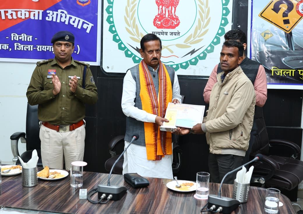 рд░рд╛рдпрдЧреЭ, 1 рдЬрдирд╡рд░реА 2026/ рдЬрд┐рд▓рд╛ рдХрд▓реЗрдХреНрдЯреЛрд░реЗрдЯ рд╕реНрдерд┐рдд рд╕реГрдЬрди рд╕рднрд╛рдХрдХреНрд╖ рдореЗрдВ рд░рд╛рд╖реНрдЯреНрд░реАрдп рд╕реЬрдХ рд╕реБрд░рдХреНрд╖рд╛ рдорд╛рд╣ рдПрд╡рдВ рдорд╣рд┐рд▓рд╛ рд╕реБрд░рдХреНрд╖рд╛ рдЬрди-рдЬрд╛рдЧрд░реВрдХрддрд╛ рдЕрднрд┐рдпрд╛рди рдХрд╛ рднрд╡реНрдп рд╢реБрднрд╛рд░рдВрдн рдХрд┐рдпрд╛ рдЧрдпрд╛ред рдЗрд╕ рдЕрд╡рд╕рд░ рдкрд░ рд░рд╛рдЬреНрдпрд╕рднрд╛ рд╕рд╛рдВрд╕рдж рд╢реНрд░реА рджреЗрд╡реЗрдВрджреНрд░ рдкреНрд░рддрд╛рдк рд╕рд┐рдВрд╣, рдХрд▓реЗрдХреНрдЯрд░ рд╢реНрд░реА рдордпрдВрдХ рдЪрддреБрд░реНрд╡реЗрджреА рдПрд╡рдВ рдкреБрд▓рд┐рд╕ рдЕрдзреАрдХреНрд╖рдХ рд╢реНрд░реА рджрд┐рд╡реНрдпрд╛рдВрдЧ рдкрдЯреЗрд▓ рджреНрд╡рд╛рд░рд╛ рд╕рдВрдпреБрдХреНрдд рд░реВрдк рд╕реЗ рдЬрд╛рдЧрд░реВрдХрддрд╛ рд╡рд╛рд╣рди рдХреЛ рд╣рд░реА рдЭрдВрдбреА рджрд┐рдЦрд╛рдХрд░ рд░рд╡рд╛рдирд╛ рдХрд┐рдпрд╛ рдЧрдпрд╛ред рд░рд╛рд╖реНрдЯреНрд░реАрдп рд╕реЬрдХ рд╕реБрд░рдХреНрд╖рд╛ рдорд╛рд╣ 31 рдЬрдирд╡рд░реА рддрдХ рдордирд╛рдпрд╛ рдЬрд╛рдПрдЧрд╛, рдЬрд┐рд╕рдХрд╛ рдЙрджреНрджреЗрд╢реНрдп рд╕реЬрдХ рджреБрд░реНрдШрдЯрдирд╛рдУрдВ рдореЗрдВ рдХрдореА рд▓рд╛рдирд╛, рдирд╛рдЧрд░рд┐рдХреЛрдВ рдореЗрдВ рдпрд╛рддрд╛рдпрд╛рдд рдирд┐рдпрдореЛрдВ рдХреЗ рдкреНрд░рддрд┐ рдЬрд╛рдЧрд░реВрдХрддрд╛ рдмреЭрд╛рдирд╛ рддрдерд╛ рд╕реБрд░рдХреНрд╖рд┐рдд рдПрд╡рдВ рдЬрд┐рдореНрдореЗрджрд╛рд░ рдбреНрд░рд╛рдЗрд╡рд┐рдВрдЧ рдХреЛ рдкреНрд░реЛрддреНрд╕рд╛рд╣рд┐рдд рдХрд░рдирд╛ рд╣реИред рд╡рд╣реАрдВ рд░рд╛рдЬреНрдп рд╕реНрдерд╛рдкрдирд╛ рдХреА рд░рдЬрдд рдЬрдпрдВрддреА рдХреЗ рдЕрд╡рд╕рд░ рдкрд░ рдЖрдпреЛрдЬрд┐рдд 11 рджрд┐рд╡рд╕реАрдп рдорд╣рд┐рд▓рд╛ рд╕реБрд░рдХреНрд╖рд╛ рдЬрди-рдЬрд╛рдЧрд░реВрдХрддрд╛ рдЕрднрд┐рдпрд╛рди рдХреЗ рдорд╛рдзреНрдпрдо рд╕реЗ рдорд╣рд┐рд▓рд╛рдУрдВ рдХреЛ рдЙрдирдХреЗ рдЕрдзрд┐рдХрд╛рд░реЛрдВ, рдХрд╛рдиреВрдиреА рд╕реБрд░рдХреНрд╖рд╛, рдкреБрд▓рд┐рд╕ рд╕рд╣рд╛рдпрддрд╛, рд╢рд┐рдХреНрд╖рд╛, рдбрд┐рдЬрд┐рдЯрд▓ рд╕реБрд░рдХреНрд╖рд╛, рд╕реНрд╡рд╛рд╕реНрдереНрдп, рдкрд░рд╛рдорд░реНрд╢ рд╕реЗрд╡рд╛рдУрдВ, рдХреМрд╢рд▓ рд╡рд┐рдХрд╛рд╕ рдПрд╡рдВ рд╕рд╛рдореБрджрд╛рдпрд┐рдХ рд╕рд╣рднрд╛рдЧрд┐рддрд╛ рдХреЗ рдкреНрд░рддрд┐ рдЬрд╛рдЧрд░реВрдХ рдХрд░рдирд╛ рд╣реИред