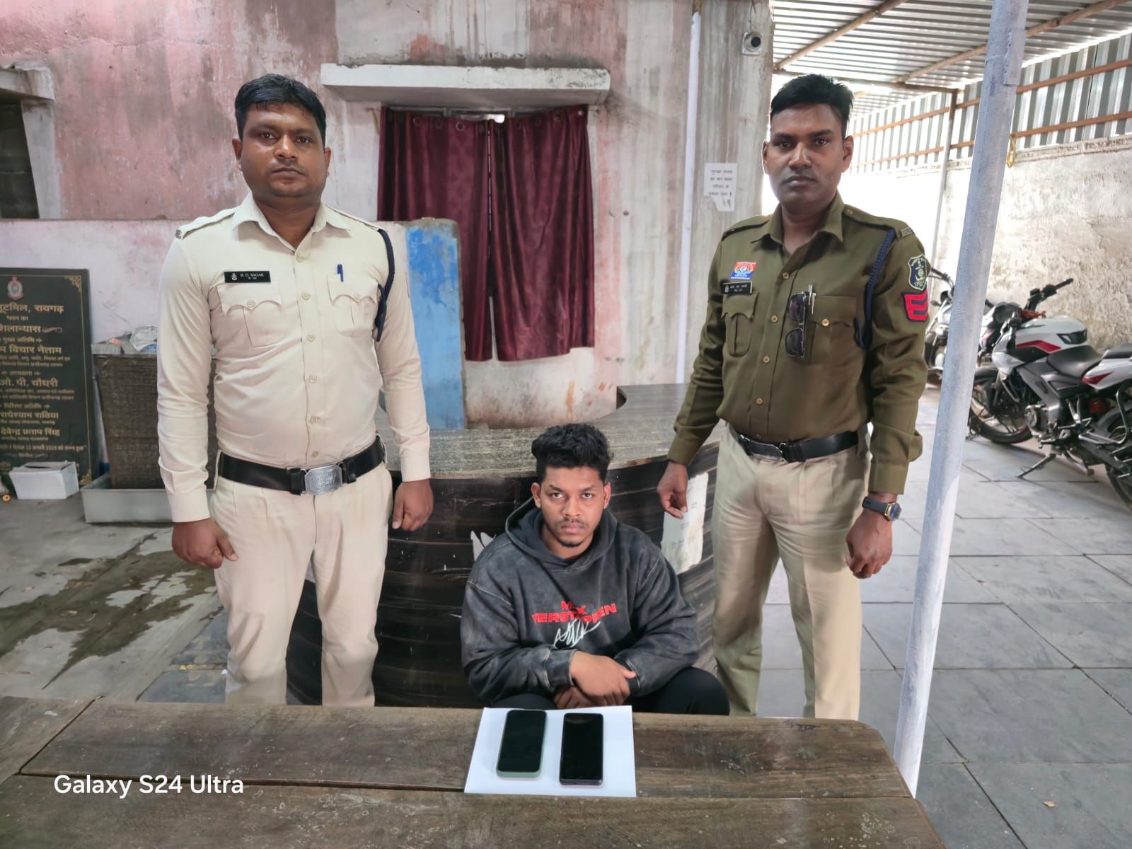 рдЗрд╕ рджреМрд░рд╛рди рдХреЛрдбрд╛рддрд░рд╛рдИ рд╕реИрд▓реВрди рдХреЗ рдкрд╛рд╕ рдЫрд╛рдкреЗрдорд╛рд░реА рдХрд░ рдПрдХ рдпреБрд╡рдХ рдХреЛ рдореЛрдмрд╛рдЗрд▓ рдХреЗ рд╡реНрд╣рд╛рдЯреНрд╕рдПрдк рдПрдк рдХреЗ рдорд╛рдзреНрдпрдо рд╕реЗ рд╕рдЯреНрдЯрд╛ рдЦрд┐рд▓рд╛рддреЗ рд░рдВрдЧреЗ рд╣рд╛рде рдкрдХрдбрд╝рд╛ рдЧрдпрд╛ред рдкреВрдЫрддрд╛рдЫ рдореЗрдВ рдпреБрд╡рдХ рдиреЗ рдЕрдкрдирд╛ рдирд╛рдо *рд░рд╛рдо рд╢реНрд░реАрд╡рд╛рд╕ рдкрд┐рддрд╛ рд╕реНрд╡. рдкрд░рдореЗрд╢реНрд╡рд░ рд╢реНрд░реАрд╡рд╛рд╕ рдЙрдореНрд░ 22 рд╡рд░реНрд╖ рдирд┐рд╡рд╛рд╕реА рдХреЛрдбрд╛рддрд░рд╛рдИ рдерд╛рдирд╛ рдЬреВрдЯрдорд┐рд▓* рдЬрд┐рд▓рд╛ рд░рд╛рдпрдЧрдврд╝ рдмрддрд╛рдпрд╛ред рдЖрд░реЛрдкреА рдХреЛ рдерд╛рдиреЗ рд▓рд╛рдХрд░ рд╡рд┐рд╕реНрддреГрдд рдкреВрдЫрддрд╛рдЫ рдХреА рдЧрдИ, рдЬрд┐рд╕рдореЗрдВ рдЙрд╕рдиреЗ рддреАрди рд╡реНрдпрдХреНрддрд┐рдпреЛрдВ рдХреЗ рд▓рд┐рдП 5 рдкреНрд░рддрд┐рд╢рдд рдХрдореАрд╢рди рдкрд░ рдореЛрдмрд╛рдЗрд▓ рд╕реЗ рд╕рдЯреНрдЯрд╛ рдиреЛрдЯ рдХрд░рдирд╛ рд╕реНрд╡реАрдХрд╛рд░ рдХрд┐рдпрд╛ред